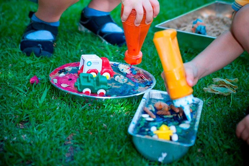 Territorio de Juegos con Agua, Territorio de Juegos con Arena, Territorio de los Planos Inclinados, Territorio de los Espejos, Territorio de las Piedras y los Dinosaurios, Territorio de las Construcciones, Territorio de la Luz, Territorio de las Composiciones, etc .