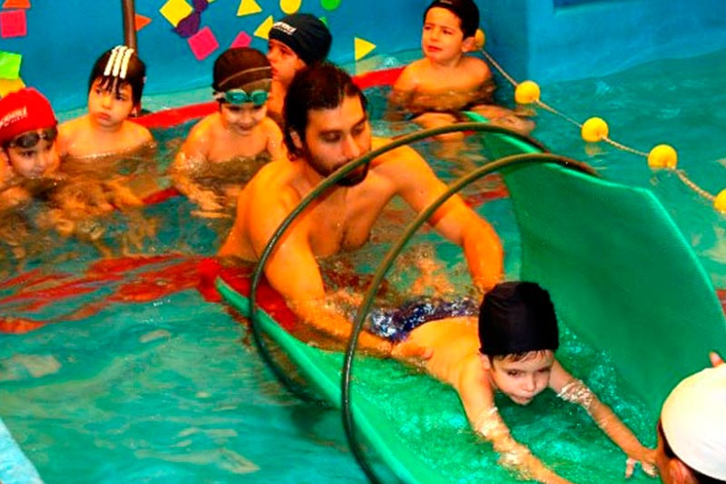 Dentro de nuestro programa de Educación Física, los niños realizan actividades lúdicas y de aprendizaje de estilos en el medio acuático. Con el mismo equipo docente que los acompaña en el resto de las actividades deportivas, se realiza un seguimiento y evaluación continuos de la adquisición de los desplazamientos motrices en el agua.