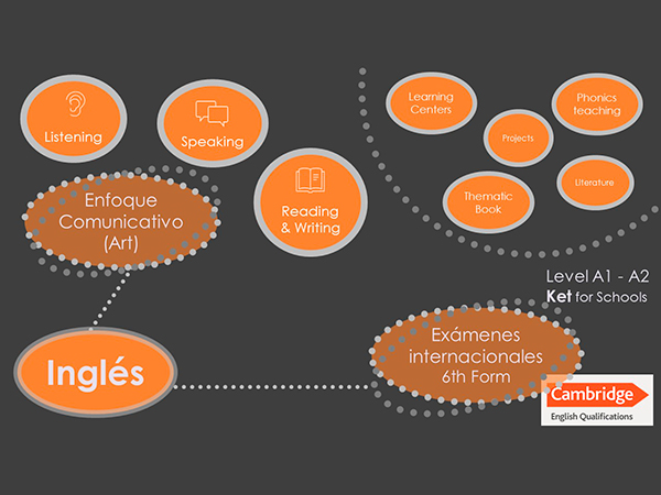 A lo largo de la trayectoria en el colegio primario, el aprendizaje y la adquisición del inglés transcurre en contextos significativos. Los proyectos que surgen del diálogo y la escucha, sirven para implementar estrategias dinámicas y flexibles que empoderan a los niños para poder internalizar la gramática como organizador del lenguaje, la escritura como expresión creativa y la interacción oral para afrontar los desafíos de un mundo cambiante.